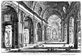 St. Peter's. Interior. Drawing by Giovanni Battista Piranesi from the mid 18th century. |