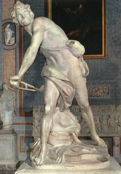 bernini- David-1623-24-Marble, height 170 cm-Galleria Borghese, Rome |