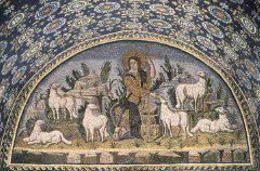 | Good Shepherd, mosaic in the Lunette over the west enrance, Mausoleum of Gala Placidia, Ravenna, Italy. 425-26 |
