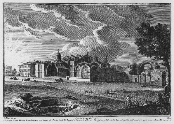 Baths of Diocletian. Drawing by Etienne Du Pérac from the mid 16th century. Baths of Diocletian. Drawing by Giuseppe Vasi from the mid 18th century.