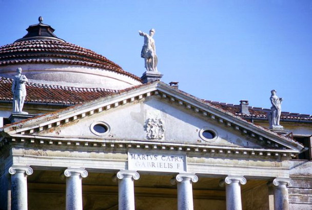 Palladio, Andrea, 1508-1580; Villa Rotonda-(Villa Capra); Vicenza, Italy; Begun 1567;-Ext- Detail of pediment